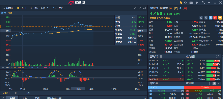 7月28日讯,明源云(00909)午后涨超10%,截至发稿,涨7.99%,报4.46港元,成交额9891万港元。