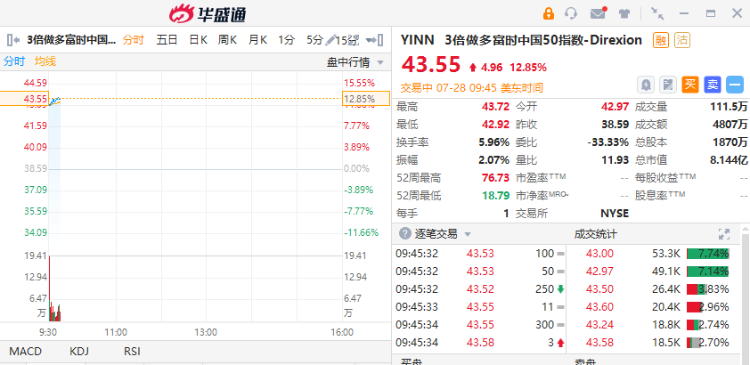 ETF方面,3倍做多富时中国50指数-Direxion $YINN 涨近13%,2倍做多沪深中国互联网指数ETF $CWEB 涨近11%。