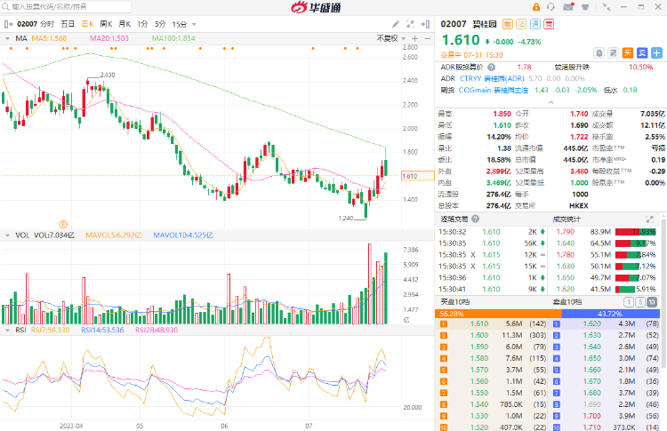 7月31日,碧桂园港股下挫,截至发稿,跌4.73%报1.61港元每股,成交额12.11亿港元;公司“20碧地04”跌超21%,“21碧地01”、“21碧地03”跌超20%,“21碧地02”跌超19%,“20碧地03”跌超15%。美元债方面,碧桂园2024年到期的美元债每一美元下跌4.2美分,至36.2美分。