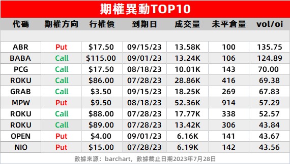 2、受Q2业绩提振,Roku周内累涨近22%,多只看涨期权异动活跃: