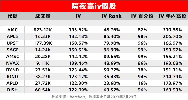 1、AMC院线隐含波动率继续维持高位,上周五成交量超82万张。