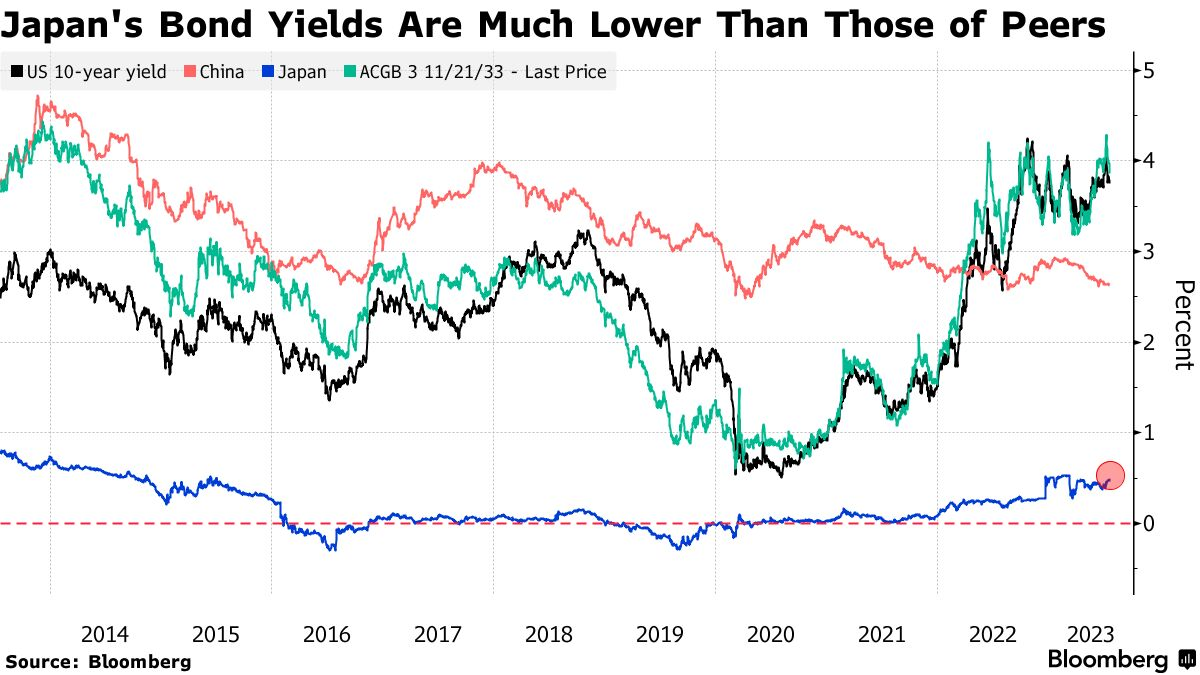 日本国债收益率远低于其他同行