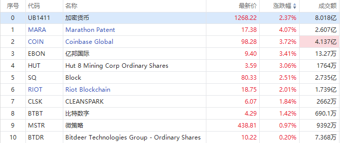 华盛资讯7月31日消息,美股早盘三大指数维持震荡走势。加密货币概念板块走高, $MARA 涨逾4%、亿邦国际 $EBON 、Coinbase $COIN 、 $HUT 涨超3%; $SQ 涨超2%, $CLSK 涨超1%。