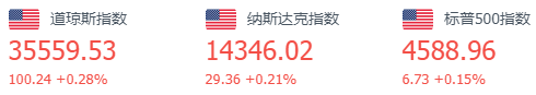 截止周一美股收盘,道指涨0.28%,报35559.53点;纳指涨0.21%,报14346.02点;标普500指数涨0.15%,报4588.96点。7月份,道指涨3.35%,标普500指数涨3.11%,纳指涨4.05%;标普500指数和纳指均录得月线五连涨。