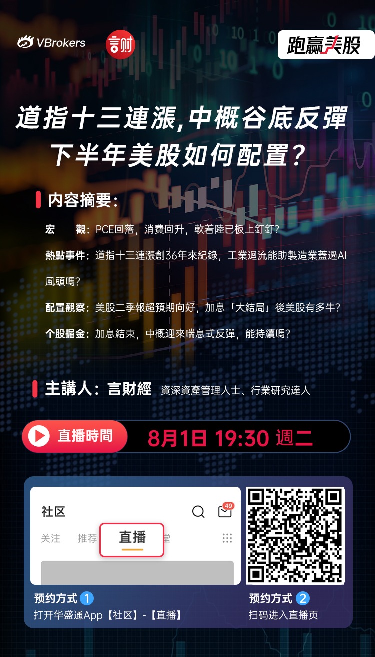 点击预约直播>>道指十三连涨,中概股谷底反弹,下半年美股如何配置?