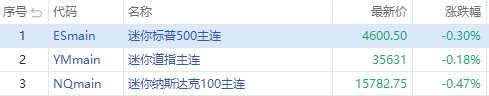 周二美股盘前, 三大股指期货集体走低,截至发稿,纳指期货 $NQmain 现跌0.47%,标普500指数期货 $ESmain 跌0.30%,道指期货 $YMmain 跌0.18%。