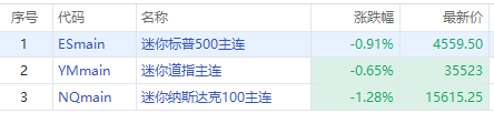 周三盘前,三大股指期货盘前集体下挫,截至发稿,道指期货跌0.65%,纳指期货跌1.28%,标普500指数期货跌0.91%。