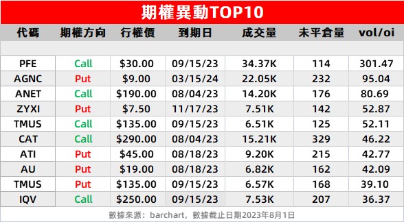 1、辉瑞 $PFE 财报显示,受全球疫情形势变化等因素影响,今年第二季度公司营业收入127.3亿美元,较去年同期下降54%。行权价为30美元,到期日9月15日的看涨期权隔夜成交超3.4万张。