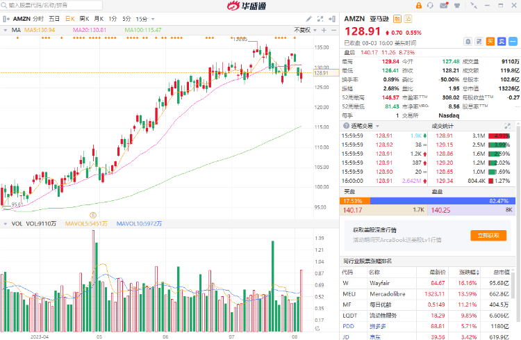 受到业绩和预期的推动,亚马逊盘后股价直线飙升,涨幅一度突破了10%。