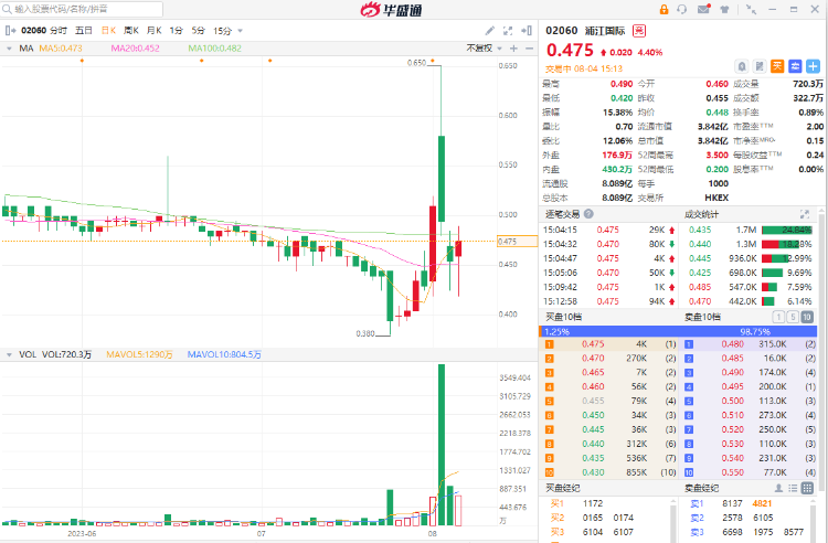 8月4日消息,浦江国际盘中急升逾6%。截至发稿,现涨4.4%,报0.475港元,成交额322.7万港元。