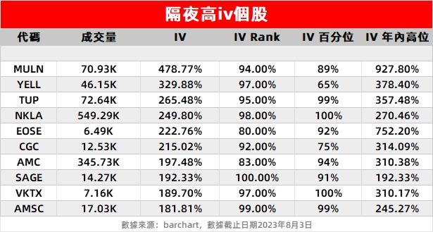 2、近期成散户热炒概念股的“宠儿”的电动车股Nikola $NKLA 隔夜涨超12%,期权成交总量激增至54.9万张,隐含波动率升至249.8%。周二,该公司宣布额外融资1630万美元。
