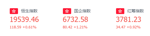 上周,恒生指数涨0.61%或118.59点,报19539.46点,上周累跌1.89%,全日成交额1144.13亿港元;恒生国企指数涨1.21%,报6732.58点;恒生科技指数涨2.06%,报4497.31点。