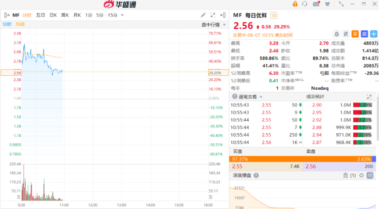 每日优鲜今日再度走高,涨超29%,三日累涨393%。上周四,每日优鲜发布公告,称已引入投资。具体来看,公司分别与两家投资机构签订了两份股份购买协议,两者将认购总计54亿股每日优鲜B类普通股,耗资2700万美元(约合人民币约1.94亿元)。