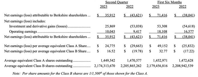 在伯克希尔净利剧烈波动背后,是因为投资和衍生品的收益和损失也需要计入财报,二季度伯克希尔投资和衍生品收益为258.69亿美元,而去年同期曾巨亏530.38亿美元。这一点也被巴菲特多次吐槽,称投资和衍生品的收益和损失对于理解财报和评估经济表现并没有真正意义。