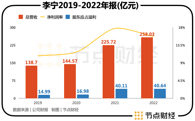 作为李宁系资本版图的一员,如今的非凡领越正在“超越”李宁。过去三年时间(2020-2022年)非凡领越收入分别约为8.19亿港元、13.82亿港元、69亿港元,年复合增长率为190.26%。
