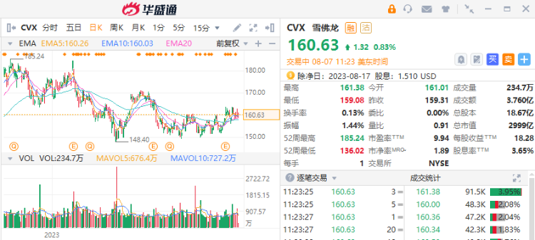 股东回报包括定期股股息。雪佛龙最后一次宣布派息是在 7 月 28 日,每股股息为 1.51 美元。年化收益率为每股普通股 6.04 美元,收益率为 3.8%。雪佛龙的派息历史可以追溯到1990年,并从2005年开始逐步提高派息率。