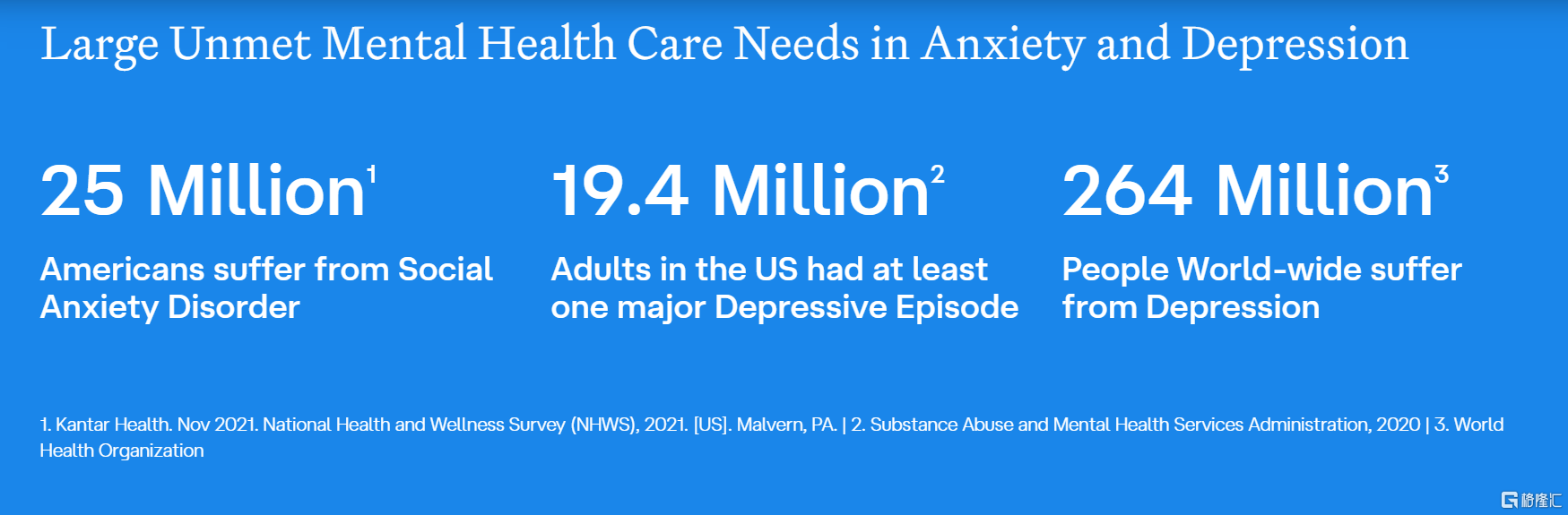 根据Vistagen官网显示,在美国,有超过 2500 万人患有社交焦虑症,全球有2.64亿人受社交焦虑障碍影响。