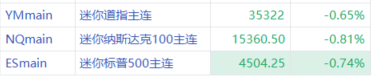 美股盘前,三大期指盘前集体走弱,截至发稿,道指期货$YMmain跌0.65%,纳指期货$NQmain跌0.81%,标普500指数期货$ESmain跌0.74%。