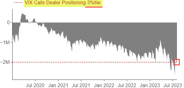 VVIX(衡量VIX的波动性,是一个先行指标)显示,8月到期前的交易商仓位受到了挑战,他们极度做空VIX看涨期权,另外麦克埃利戈特指出,交易商同时也在大量做空VIX看跌期权,这导致VVIX飙升。