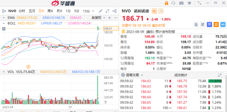 这表明在Wegovy的广受关注的试验更新之后,诺和诺德的快速增长意味着它的股价相对于竞争对手有相当大的溢价,在美股市场,比其5年历史平均水平高出60%以上。在业绩公布之前,预期特别高,并在业绩公布之前面临下行风险,不需要太多压力就会引发回调,因此需要一次大的超预期业绩来保持涨势。