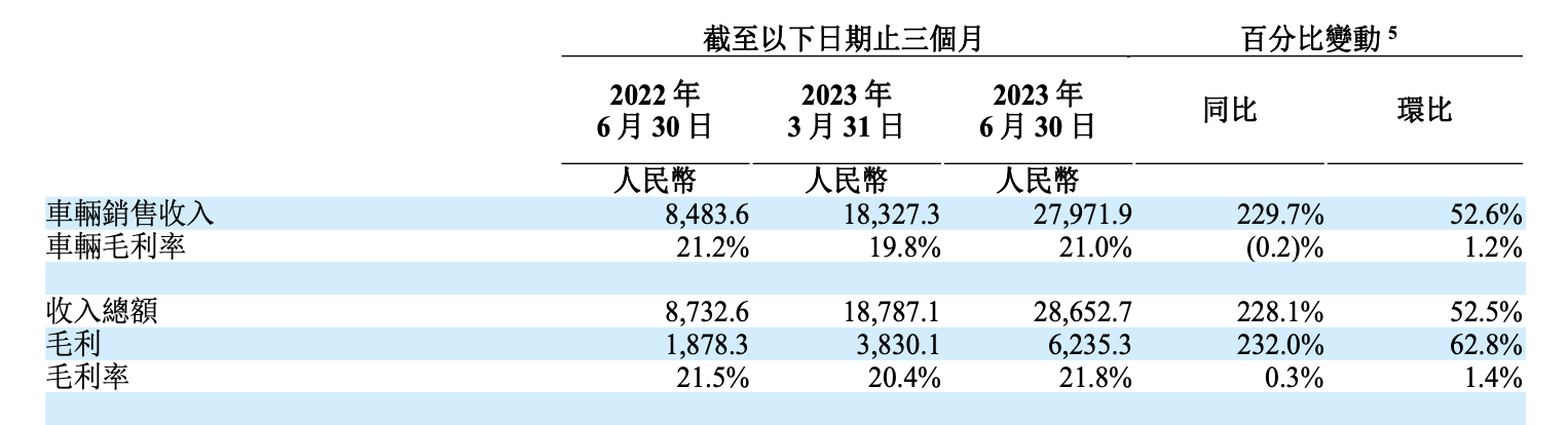 更好看的数字在于毛利率和现金及等价物。二季度,理想的毛利率达21.8%,不仅好于今年一季度的20.4%,也超过特斯拉今年二季度的18.2%毛利率。