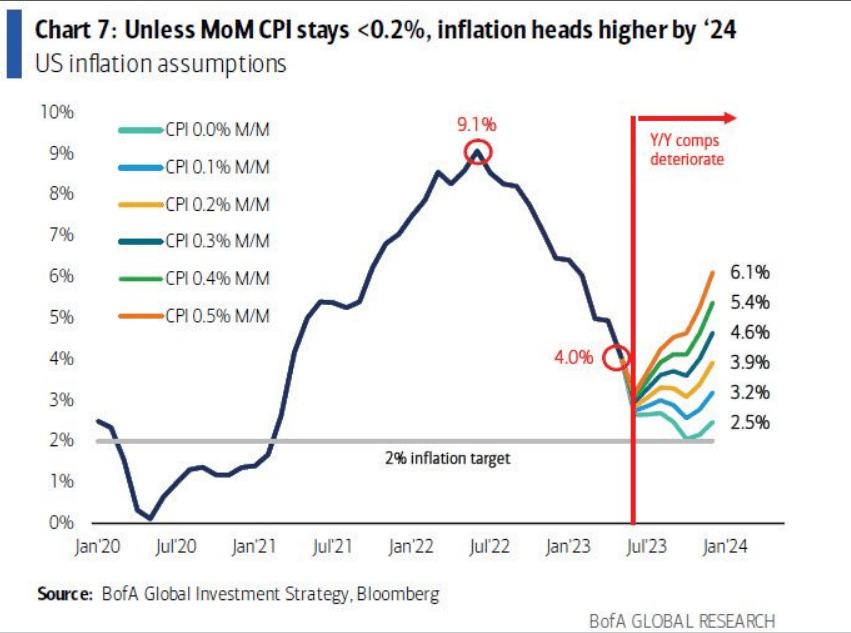 他们的研究表明,在0.2%的环比增速不变的情况下,到2023年12月,总体CPI将再次加速至4.04%,到2024年3月才将放缓至2.92%。