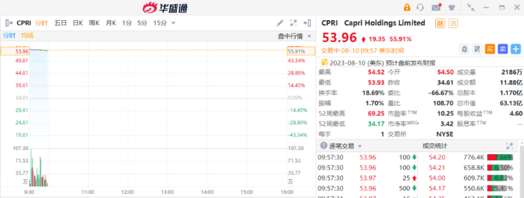 奢侈品行业又现大并购!Coach拟收购MK、范思哲母公司Capri Holdings $CPRI ,后者飙涨超55%。