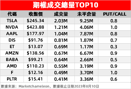 1、特斯拉:股价隔夜上涨1.3%,旗下改款Model 3被曝10月交付,预估售价20万人民币左右。过去5天,特斯拉空头占比提升,其看跌/看涨期权比率上升 2.1%;隔夜8月11日到期、行权价为250美元的看涨期权交易量激增,共有19万份合约交易。
