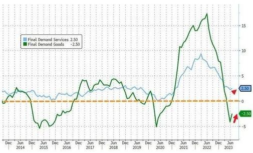 7月生产者能源价格指数喜忧参半,天然气燃料的价格上涨,但柴油价格下降了7.1%。扣除食品和能源的核心商品价格在6月份下降后,与上月持平。近几个月来,商品价格走弱已经以价格下跌的形式传导给消费者。