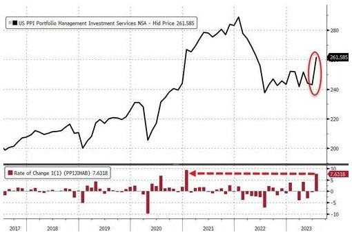 PPI报告中的几个类别,尤其是医疗保健(医院门诊护理和养老院护理)显示了通胀加速迹象,该类别被用于计算美联储偏爱的通胀指标——个人消费支出(PCE)价格指标。与此同时,医生护理费用几乎没有变化。券商服务和投资咨询成本在7月份大幅增长,这也是个人消费支出的重要组成部分。7月最终需求服务物价指数上涨的40%可以追溯到投资组合管理价格上涨7.6%。