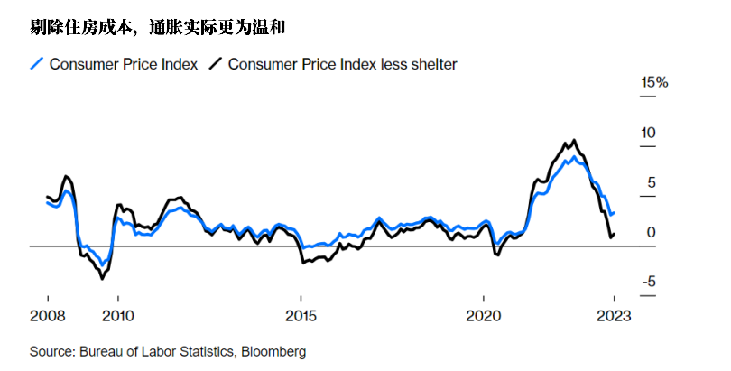 旧金山联储最近的一份报告显示,住房成本通胀在4月份左右达到顶峰,同比增幅为10%左右。报告称,随着越来越多的租约周转,这一指标将在今年剩余时间和2024年继续下降,并在明年5月份达到零。事实上,来自私人部门的更及时的数据,如公寓租赁网站Apartment List,已经显示租金同比下降。