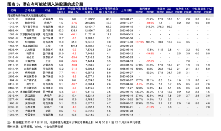1)截至6月30日,获新纳入的港股通标的平均股价下跌11%,成交量提升15%;被剔除的港股通标的平均股价下跌24%,成交量萎缩42%。