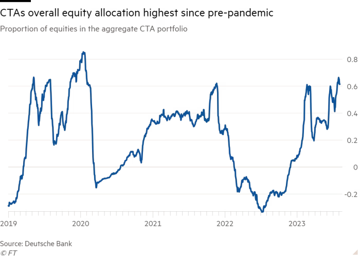 据德意志银行(Deutsche Bank)称,最近几周,大宗商品交易顾问(CTA),即依靠模式检测算法和统计模型指导跨市场交易的对冲基金增加了对股票的风险敞口,并达到了自新冠疫情爆发前以来的最高水平。