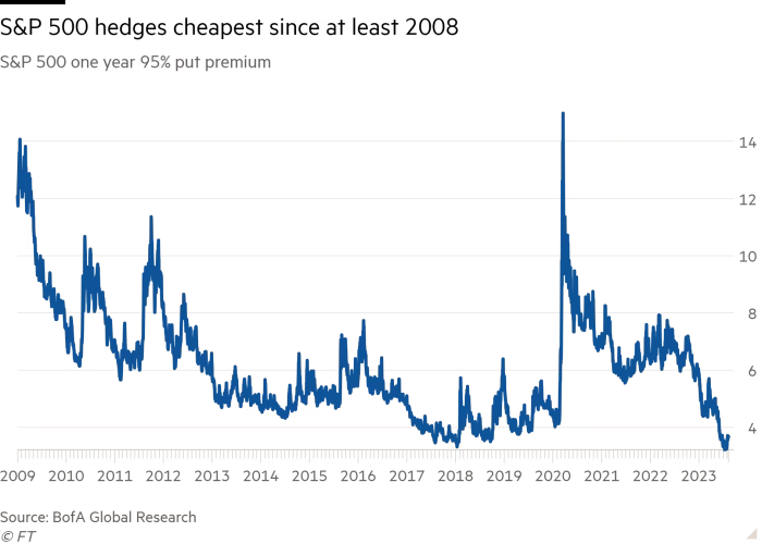 “自我们的数据始于2008年开始记录以来,防范标普500指数在未来12个月下跌的成本从未如此之低。”