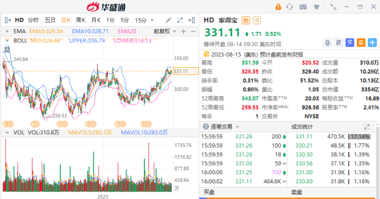 家得宝(HD.US)将于8月15日(周二)美股盘前公布2023年第二季度财报。分析师预计,家得宝Q2营收为422亿美元,同比下降3%;每股收益为4.45美元,上年同期为5.05美元。