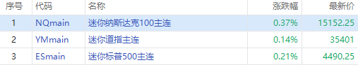 周一美股盘前,美股三大股指期货小幅走高,截至发稿,纳指期货 $NQmain 现涨0.37%,标普500指数期货 $ESmain 涨0.21%,道指期货 $YMmain 涨0.14%。