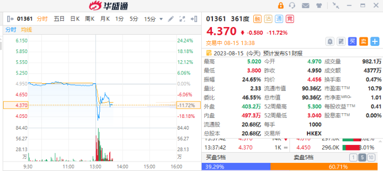 361度(01361.HK)半年多赚28%(盈喜时料按年增不少于25%)及恢复派发中期股息6.5仙。