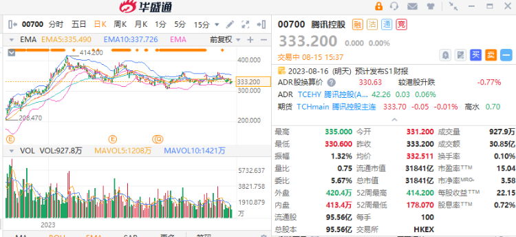 股价走势上,腾讯股价连续两日考验200天线(现处约330.3港元)支持。轮场资金倾向于业绩前吸纳好仓,腾讯好仓过去5日仅1日录得净流出,5日累计净流入约5600万港元,同期淡仓净流出约640万港元。