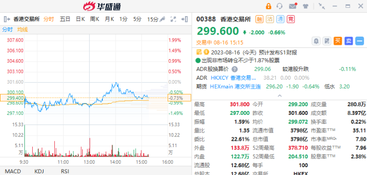 港交所公布业绩后股价变动不大,续于300港元关口附近争持。据摩根大通即市资金流数据,资金倾向部署好仓,当中以价外中年期条款较多资金留意,如港交购 $16976.HK ,行使价360.2港元,实际杠杆约11倍,2023年12月22日到期。