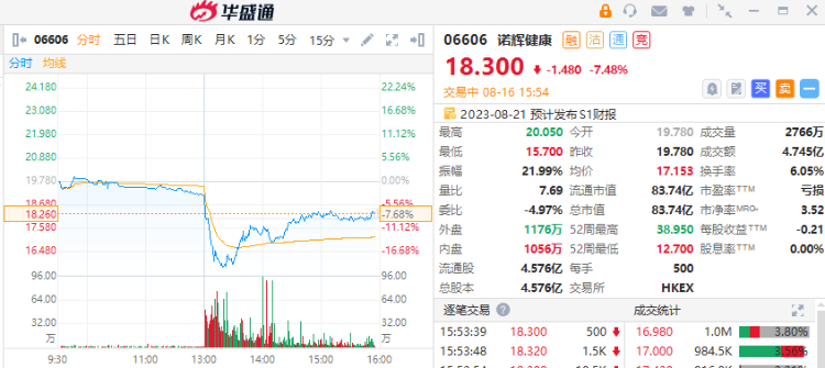 据了解,诺辉健康将于8月21日(下周一)港交所盘后发布2023年中期业绩。