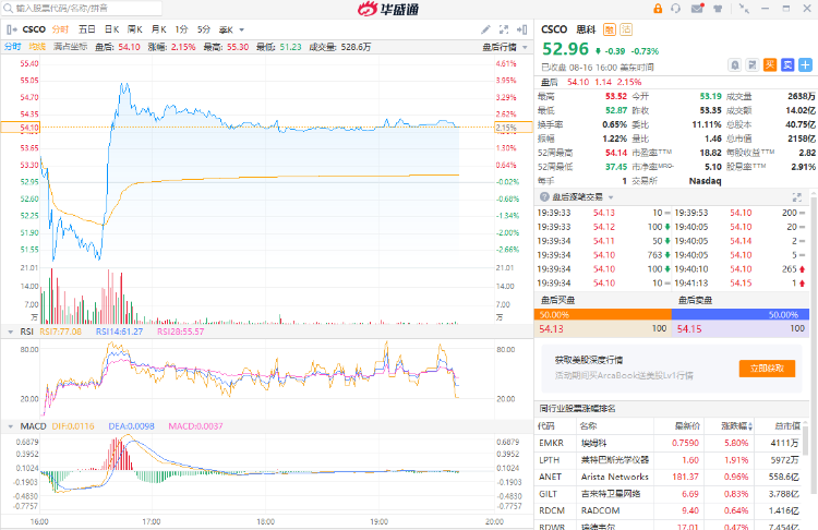 消息公布后,思科股价 该股周三收于52.96美元,今年以来上涨了11%。