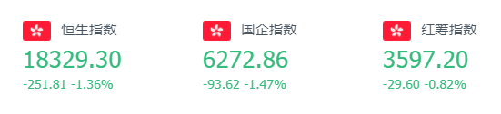 周三,港股三大指数全天表现弱势,市场情绪表现低迷。恒指最终下跌1.36%,国指、恒生科技指数分别下跌1.47%和1.27%。