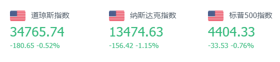 昨夜美股三大指数连续第二日集体收跌,纳指盘中跳水,收盘跌1.15%至近七周新低,标普500指数跌0.76%,道指跌0.52%。大型科技股全线下跌,特斯拉跌超3%,Meta跌超2%,亚马逊、奈飞、英伟达跌超1%。