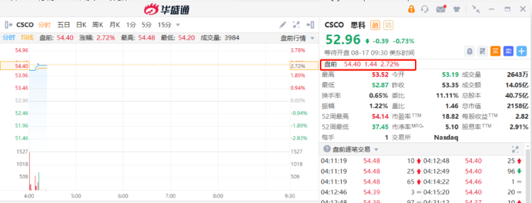 思科 $CSCO 盘前涨2.87%,Q4业绩好于预期。