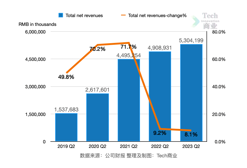 从最新季度Q2收入表现来看,B站收入为53亿元,同样表现为近五个财年同期最高。季度收入增长8%,为近五个财年同期增速最低。