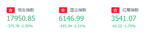 截至周五收盘,恒生指数上周累计下跌5.89%,报收17950.85点;科技指数跌6.22%,报收4007.39点;国企指数跌6.02%,报收6146.99点。