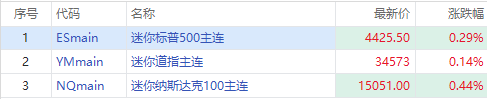 华盛资讯8月22日消息,三大股指期货盘前走高,截至发稿,纳指期货 $NQmain 现涨0.44%,标普500指数期货 $ESmain 涨0.29%,道指期货 $YMmain 涨0.14%。