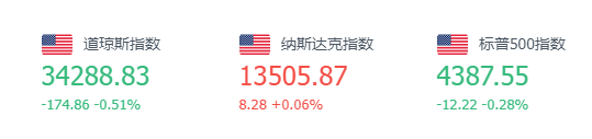 周二美股三大指数收盘涨跌不一,道指跌0.51%创六周新低,标普500指数跌0.28%,纳指涨0.06%。大型科技股多数上涨,奈飞涨超1%,苹果、特斯拉、微软、谷歌小幅上涨,英伟达跌超2%。银行股指连跌七日,“美国四大行”齐跌超2%。