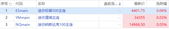华盛资讯8月23日消息,三大股指期货小幅走高,截至发稿,纳指期货 $NQmain 现涨0.05%,标普500指数期货 $ESmain 涨0.06%,道指期货 $YMmain 涨0.03%。
