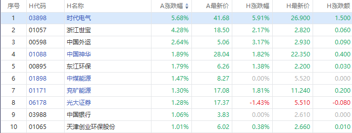 截至发稿,时代电气A股涨5.68%,H股现涨超5%;浙江世宝A股涨4.28%,H股现涨超2%;中国外运A股涨2.64%,H股现涨超3%。